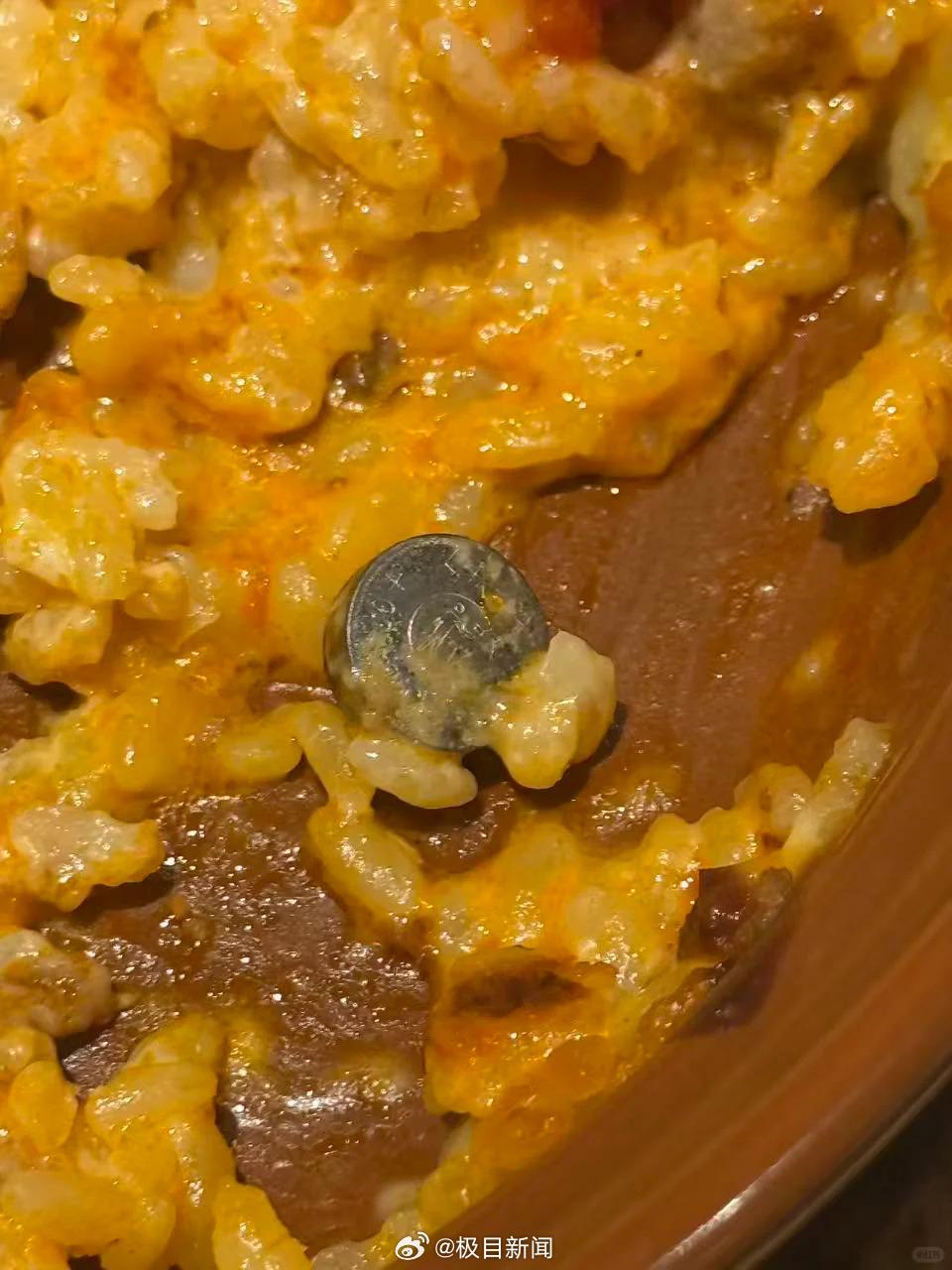 该网友发布的图片显示,饭食里有一颗纽扣大小的电池。发帖网友称,2日,其家人在南京一家萨莉亚门店就餐时吃出纽扣电池,门店负责人表示能给出的最大赔偿是免单。其担心误食纽扣电池的危害性,他们已热线反映此事。